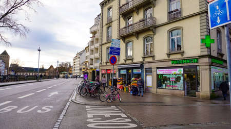 Strasbourg, Alsace, France - December 30, 2021: People going to downtown area of Strasbourg at Alsace, France on December 30, 2021