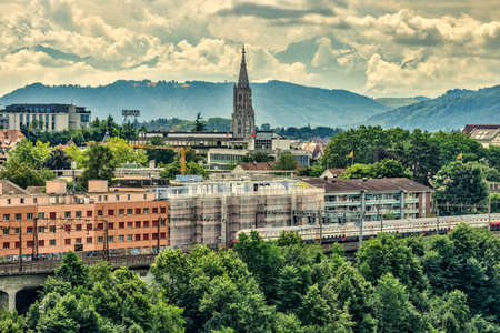 Bern, Switzerland - July 27, 2019: Panoramic view at sunny summer day.