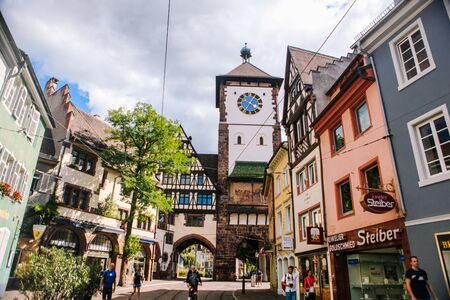 FREIBURG IM BRISGAU, GERMANY, 18 JULY 2020: Old gate in the city center