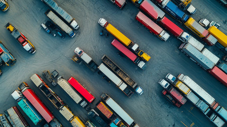 Top view parking lot with parked trucks
