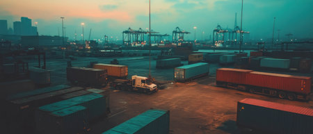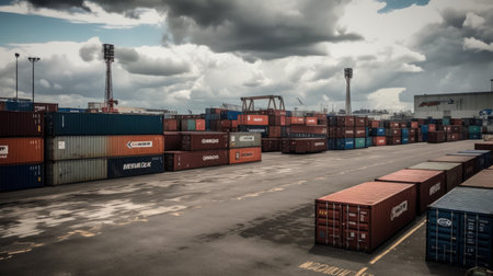 Industrial scene: containers, cranes and cargo being loaded., generative AI