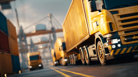 Urban Distribution Hub: Containers Loaded onto Trucks for Last-Mile Delivery Plans Departing