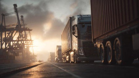 Digital Freight: Futuristic Truck Transport at Port with Data Visualization