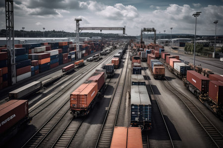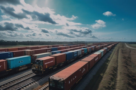 Business logistics concept of Container Cargo freight trains for air cargo trucking, rail transportation, and shipping online goods worldwide