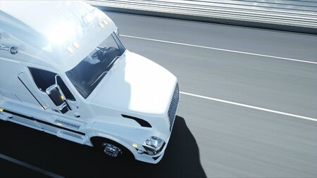 Blurred unrecognizable truck transport on road. Transport overpasses on the highway for the transport of orders and goods
