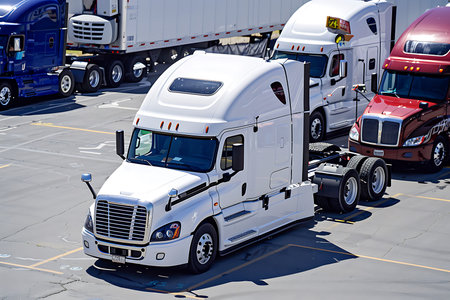 Logistic center cargo trucks transportation shipping lorry delivery freight semi-truck road carrier warehouse storage vehicle load shipment delivery container van fast transport commercial business