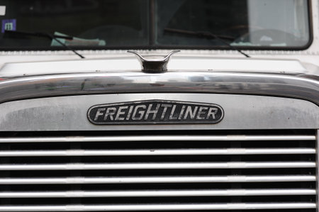 NEW-YORK - SEPTEMBER 26: close up shot of Freightliner truck radiator on September 26, 2011 in New-York, USA. Freightliner Trucks is an American truck division of Daimler Trucks North America LLC, itself a wholly owned subsidiary of the German Daimler AG