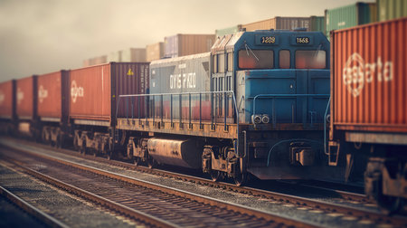 Efficient transportation of international goods by train with intermodal containers. Concept Intermodal Container Shipping, Train Transportation, International Logistics, Efficient Cargo Routing