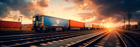 Business logistics concept of Container Cargo freight trains for air cargo trucking, rail transportation, and shipping online goods worldwide