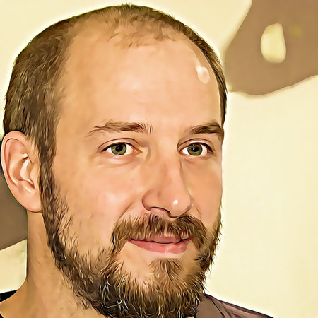 Portrait of a young man with glasses and a beard. Vector illustration.