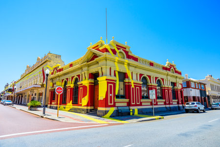 Fremantle, Western Australia - November 27 2019: Historical buildings in Fremantle. Fremantle known for its maritime history, Victorian architecture and remnants from Australia's days as a British penal colony.