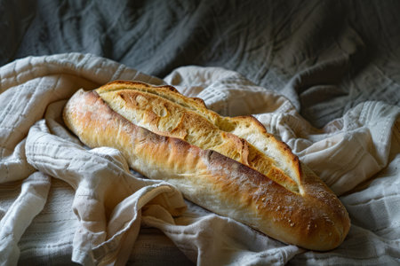 French bread with linen fabric with folds
