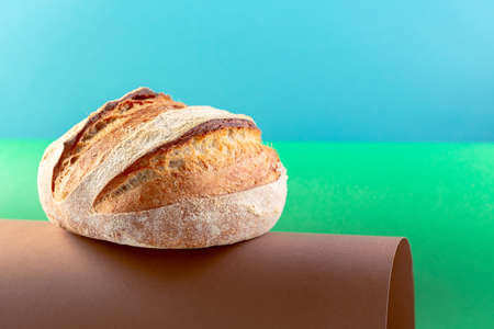 British White Bloomer or European sourdough. Baton loaf bread on a neutral background. fresh loaf bread.