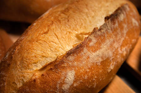 Close up of fresh baked rustic bread. Shallow focus.