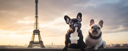 Pets capturing a moment at the iconic Eiffel Tower in France. Concept Pet Photography, Iconic Landmarks, Eiffel Tower, Traveling with Pets