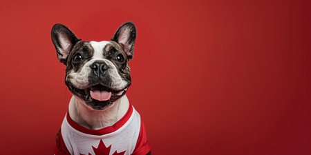 Cute funny dog with Canadian Flag. Creative concept for Canada Day. Funny pet