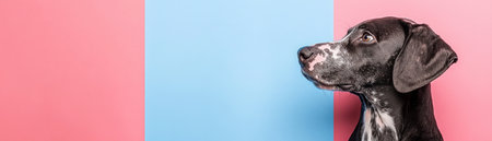 Portrait of a funny dog Pointer Kurzhaar. Brown background.