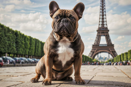 An AI generated illustration of A canine companion poses in front of the iconic Eiffel Tower