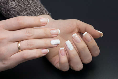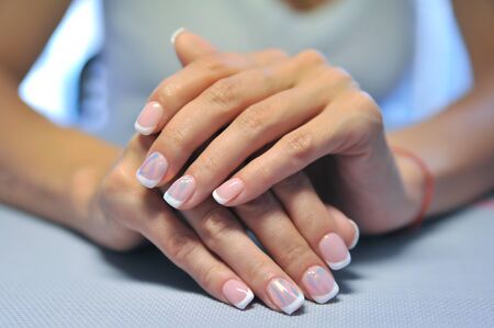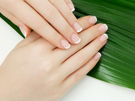 Woman hands with french manicure close up