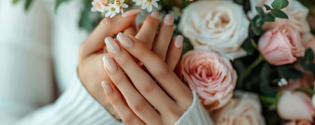 Beautiful hands and natural nails, ideal clean manicure. Decorated with stylish elements