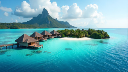 Beautiful bora resort islands overwater bungalows picture AI Generated Image