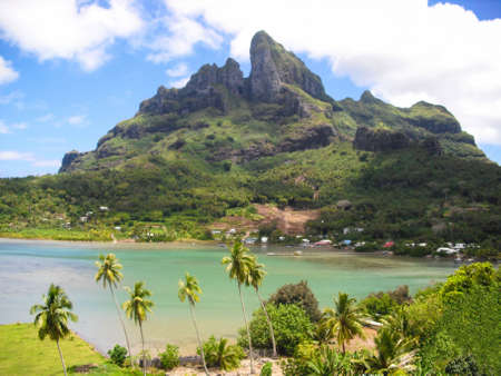 Beautiful mountain landscape with mount Turi on Huahine Island, French Polynesia.