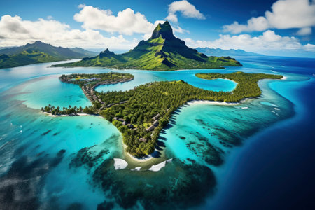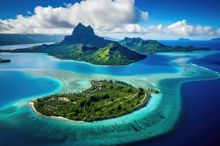 Bora bora aerial view, tahiti french polynesia. Generative AI illustrator