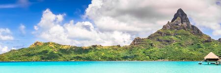 Bora Bora Island, French Polynesia. Web banner in panoramic view this mazing Beach