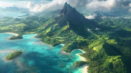 Discover the serene beauty of a stunning tropical island, featuring lush mountains and crystal-clear waters, perfect for travel and exploration.