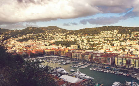 Top view on the Lympia harbor in Nice in France seen from the hill Colline du Château