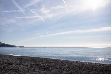 Front view of the Mediterranean sea, bay of Angels, Nice, French riviera, France