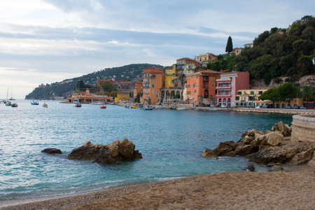 Evening on the Cote d'Azur, France. Mediterranean city and commune in the southeast of France in the Provence region of Villefranche-sur-Mer.