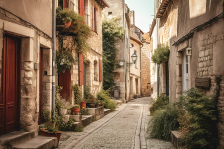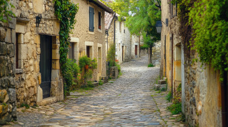 A charming cobblestone street in a quaint French village, with ample copy space for your text