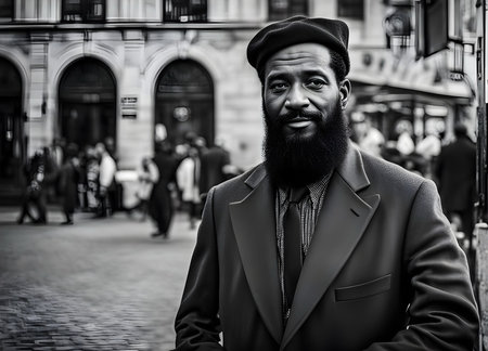 A man dressed in a suit and hat is seen walking down a bustling city street, A businessman rushing through crowded city streets, AI Generated