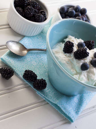 Fresh blackberries and blueberries with non-fat greek yogurt.