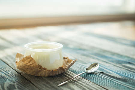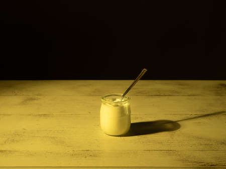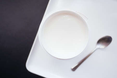 dairy and rustic farm food styled concept - fresh creamy white yogurt, elegant visuals