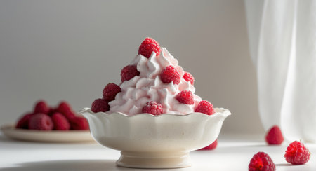 AI Generated. A Delectable Raspberry Whipped Cream Dessert in a Beautiful Bowl