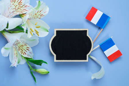creative french style background with french republic flags and white lilies