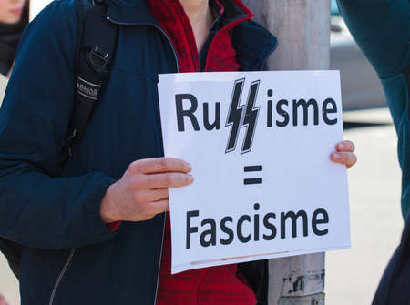 War in Ukraine support with poster, Strasbourg, France, Russian consulate February 2022