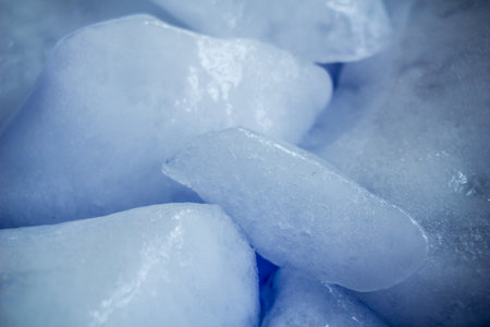 Ice cubes close up. Selective focus with shallow depth of field. Toned.