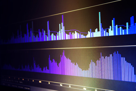 Audio waveform equalizer on monitor. Abstract technology concept. Computer generated image rendered with DOF