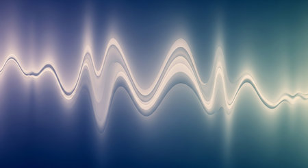Abstract glowing sound wave with blue and purple gradient background and light streaks