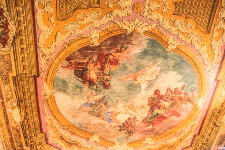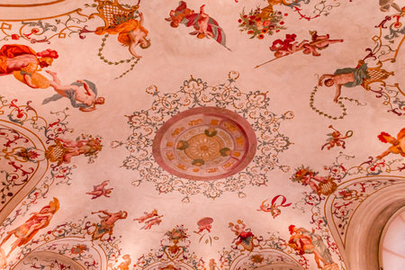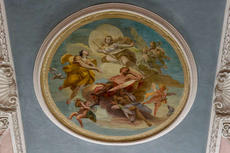 Rome, Italy - Oct 05, 2018: ceiling painting of Mariano Rossi salon in the Borghese Gallery, Rome