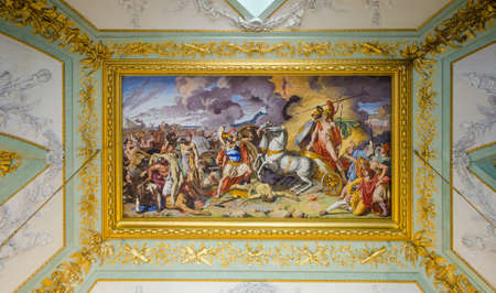 VERSAILLES PARIS, FRANCE - MAY 30: Ceiling painting in one of the rooms of the Royal Chateau Versailles on May 30, 2015 at the Palace of Versailles near Paris, France