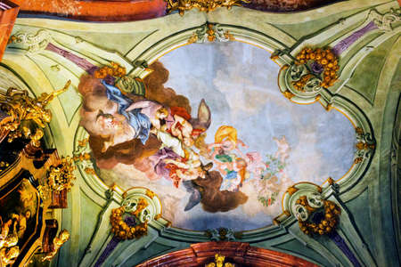 Art details of the interiors of of St. Nicholas Church in the quarter of Mala Strana in Prague in Central Europe
