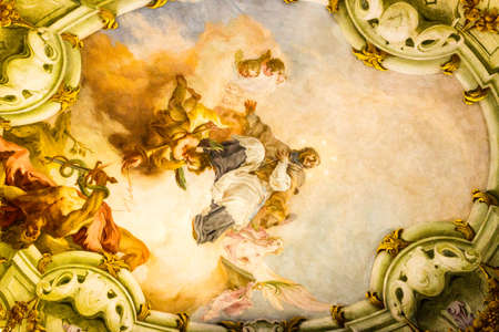 Editorial: KREMSMUNSTER, UPPER AUSTRIA, AUSTRIA, August 18, 2020 - View of the painted ceiling of the imperial hall inside the Kremsmunster Abbey
