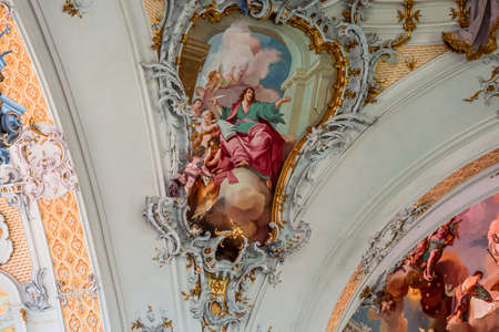 OTTOBEUREN, BAVARIA, GERMANY, JUNE 04, 2022: ceilings frescoes by Johann Jakob Zeiller (1708-1783) in Ottobeuren abbey basilica
