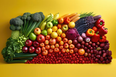 rainbow gradient made of various fruits and vegetables, created with generative ai
