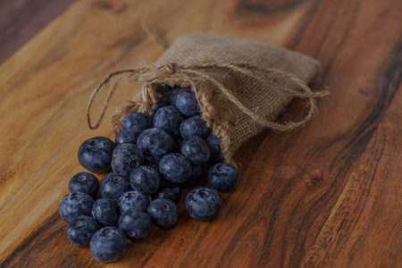 fresh blueberries in a raffia bag