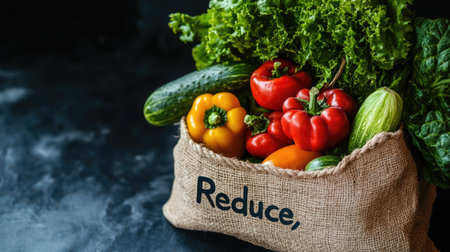A collection of fresh vegetables in a rustic burlap bag promoting sustainability. This image emphasizes healthy eating and eco-friendly practices, perfect for food-related themes.